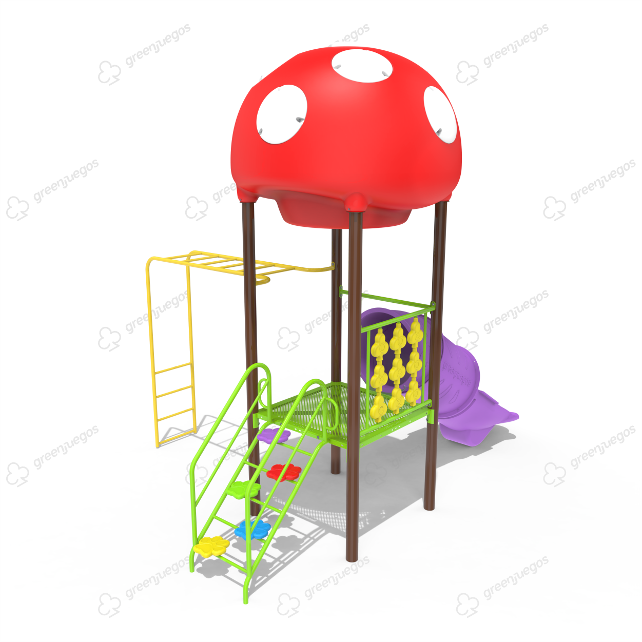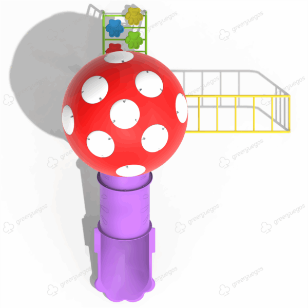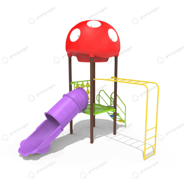 1 Torre premium con techo en forma de hongo gigante- Escalera con patas de oso- Pasa manos – TA-TE-TI Sensorial Para No Videntes – 1 Tobogán tubo cerrado de rotomoldeo 75 cm diámetro.-.