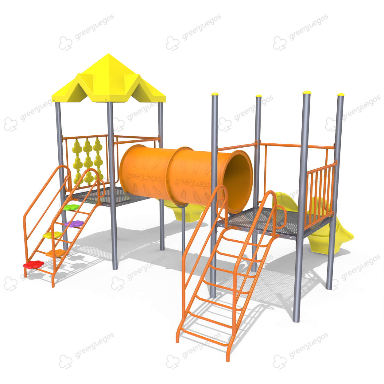 • Producto Fabricado Según requisitos de ISO 9001:2015, en diseño, desarrollo, fabricación de juegos infantiles para uso en espacios públicos, privados, mobiliario urbano y toboganes acuáticos.