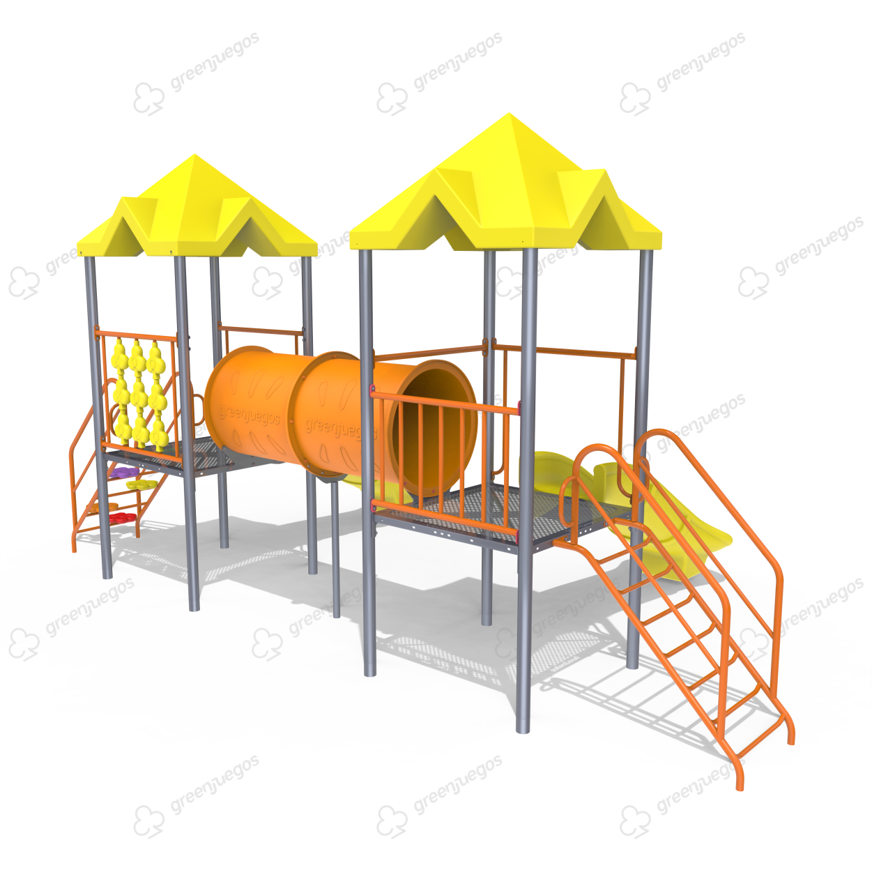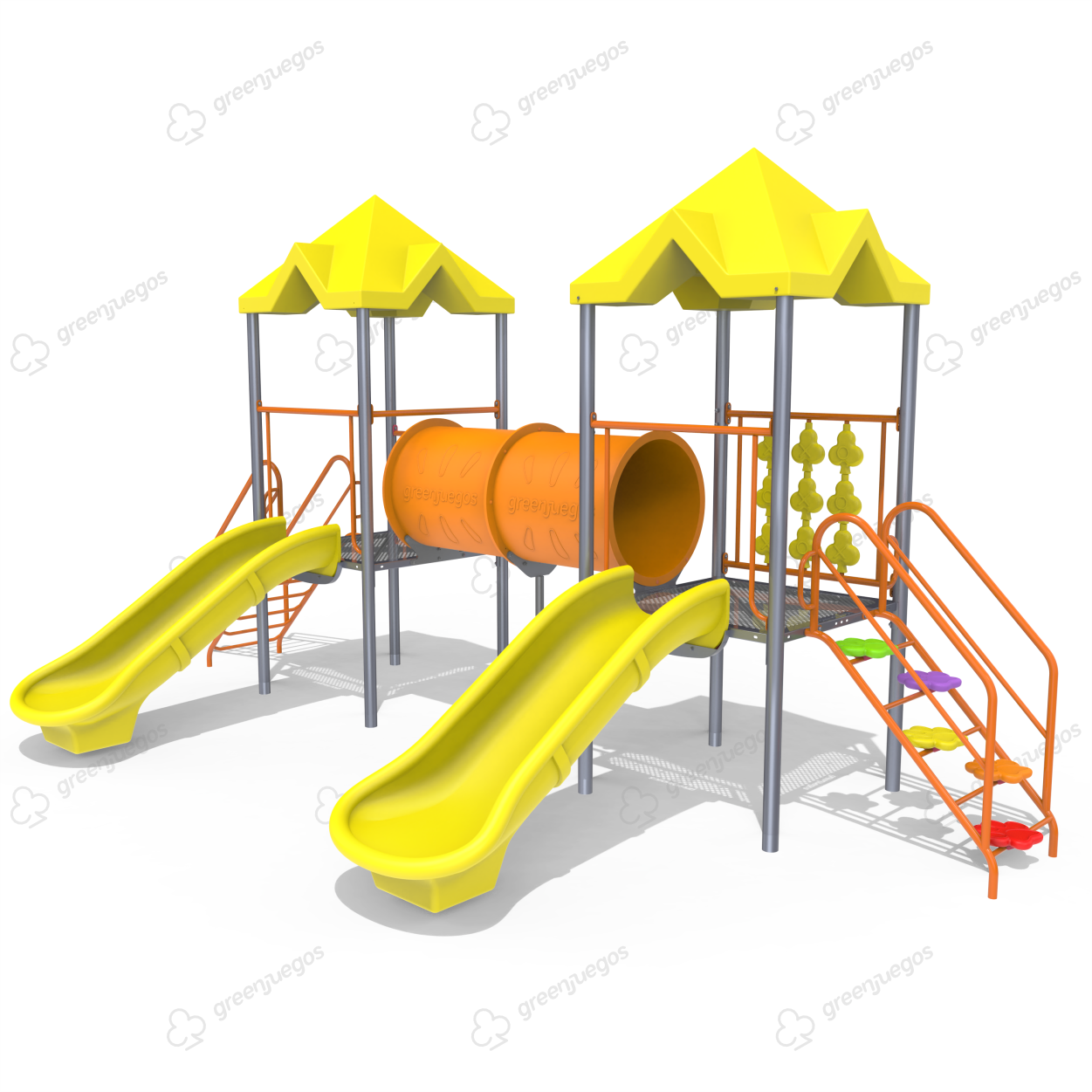 • Producto Fabricado Según requisitos de ISO 9001:2015, en diseño, desarrollo, fabricación de juegos infantiles para uso en espacios públicos, privados, mobiliario urbano y toboganes acuáticos.